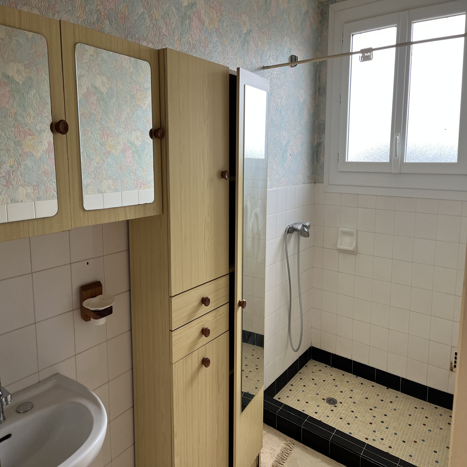 A l'étage: Un palier desservant 3 chambres, une salle de douche, un WC, un grenier.