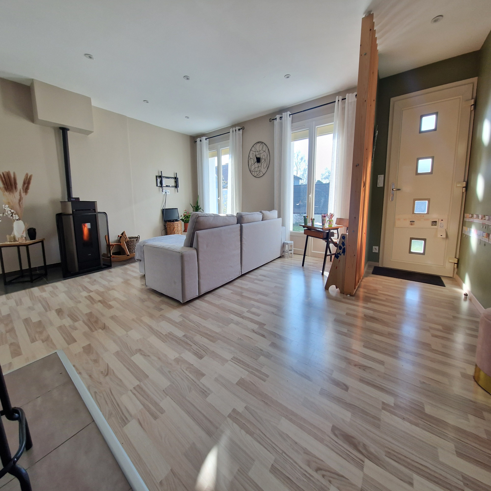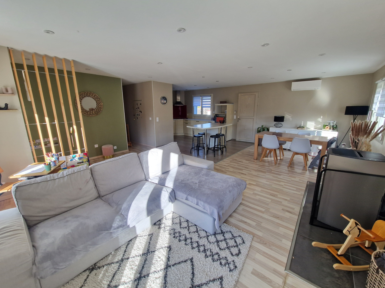 Isolation par l'extérieur, clim réversible et poêle à granulés. Aucun travaux à prévoir !
