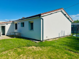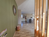 Maison de plain pied, comprenant une entrée, un salon séjour ouvert sur une cuisine aménagée et équipée avec cellier attenant, 3 chambres, une salle de bains, un wc, une buanderie et un bureau.