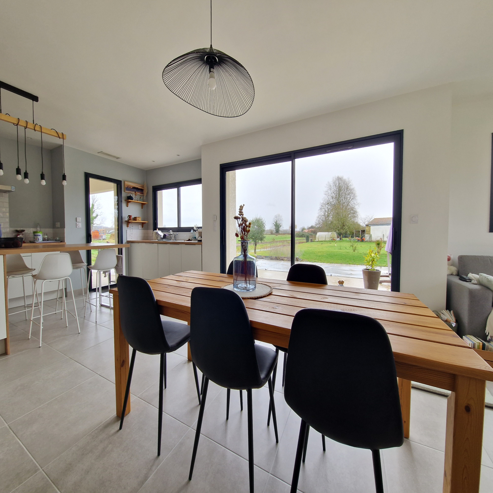Maison de plain-pied construite en 2019, d'environ 129 m² habitables. Elle se compose d'une piéce à vivre de 50m2 avec cuisine équipées et aménagée, 4 chambres dont une suite parentale avec dressing et salle d'eau, une salle de bain et deux WC indépendant.