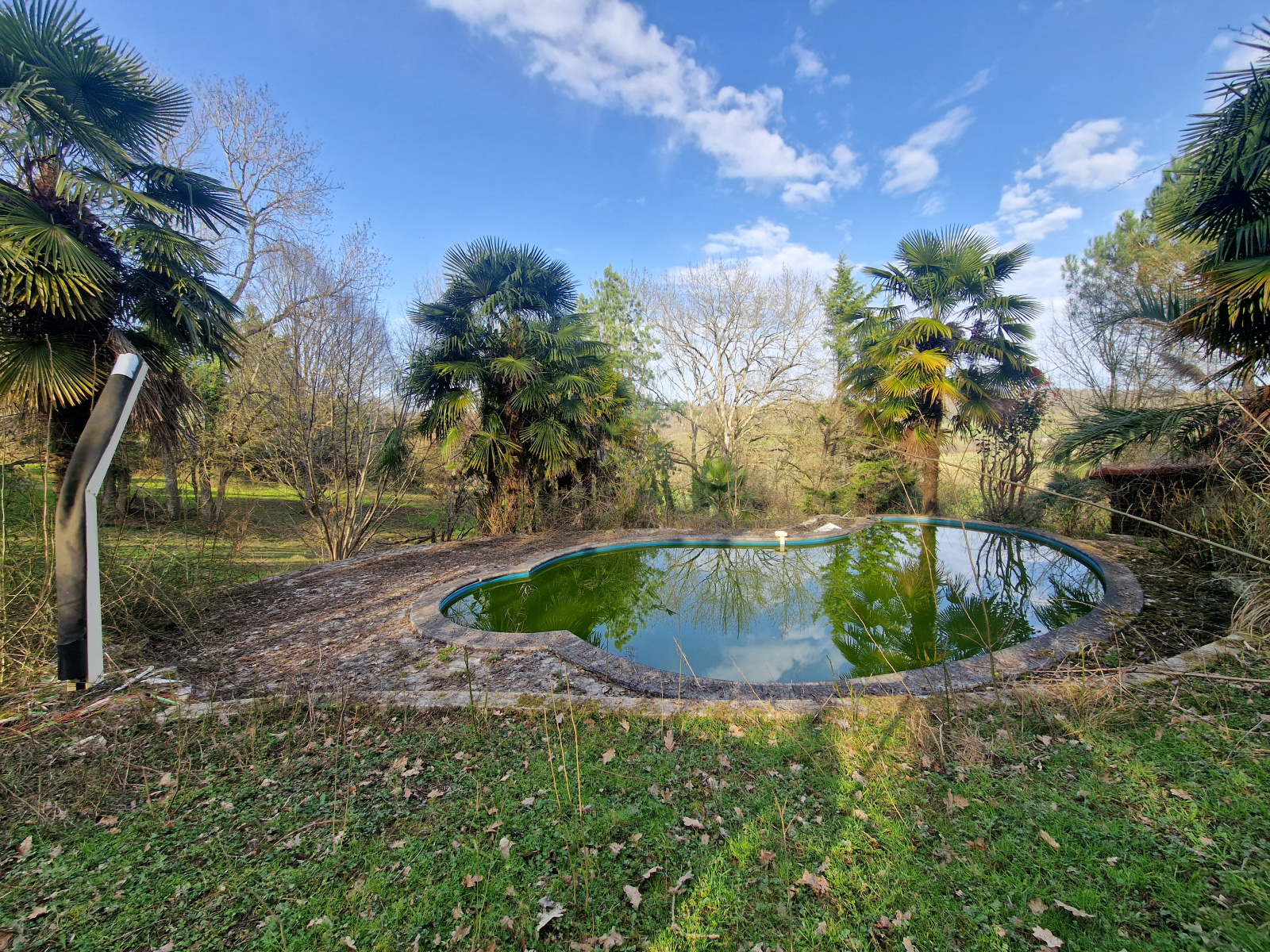 Grande terrasse, dépendance, jardin et piscine à remettre en route.