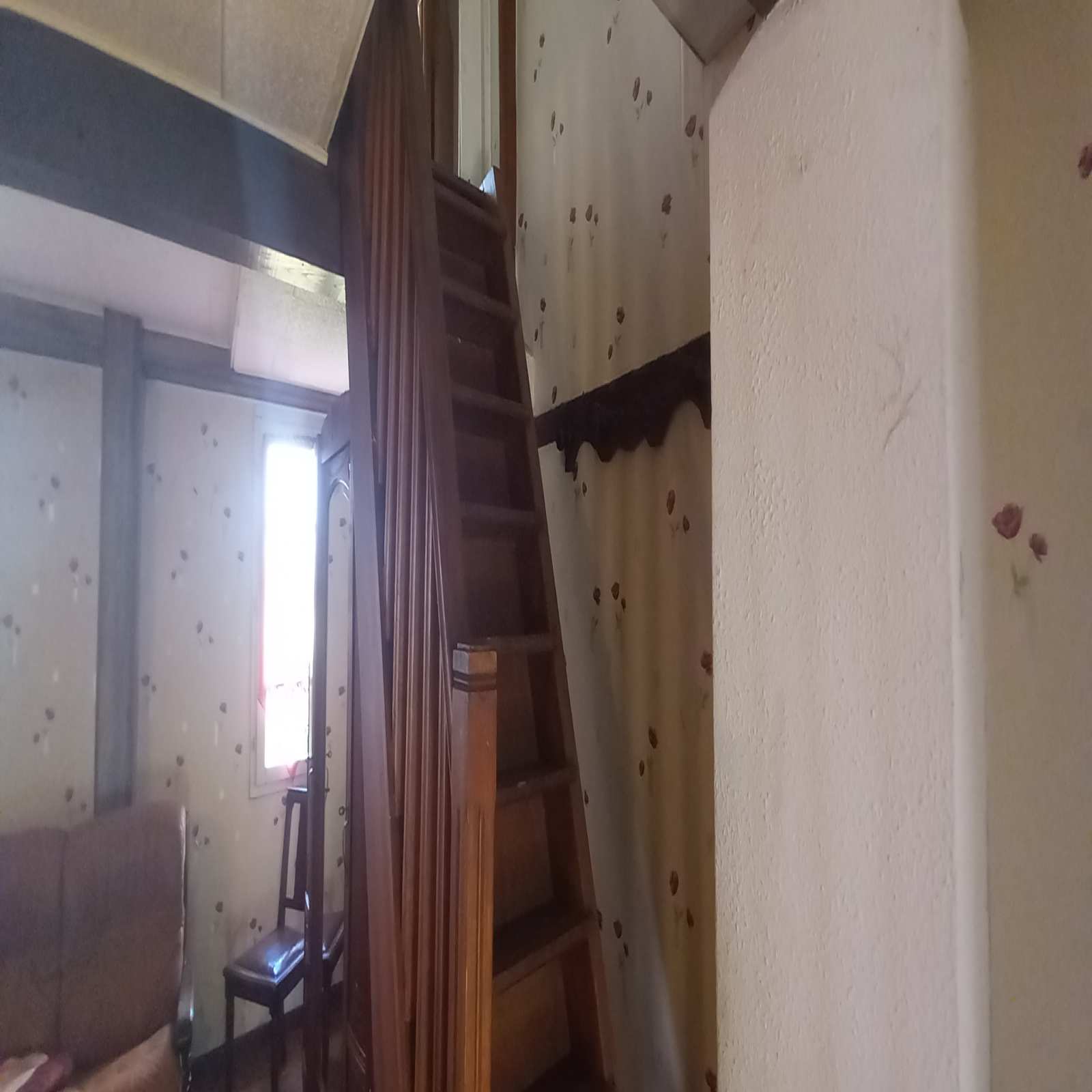 Un escalier type échelle de meunier conduit à l'étage où l'on trouve 2 chambres partiellement aménagées.