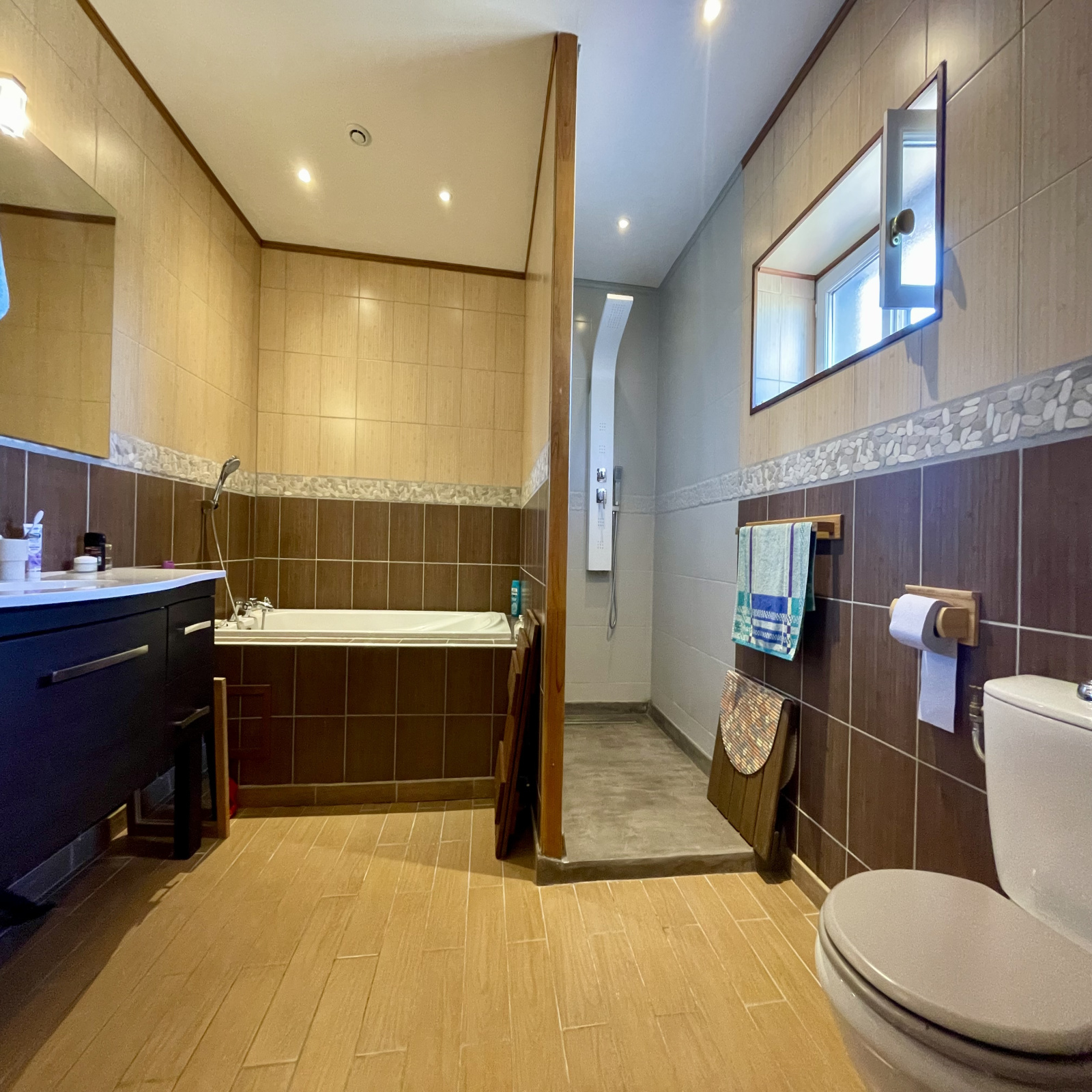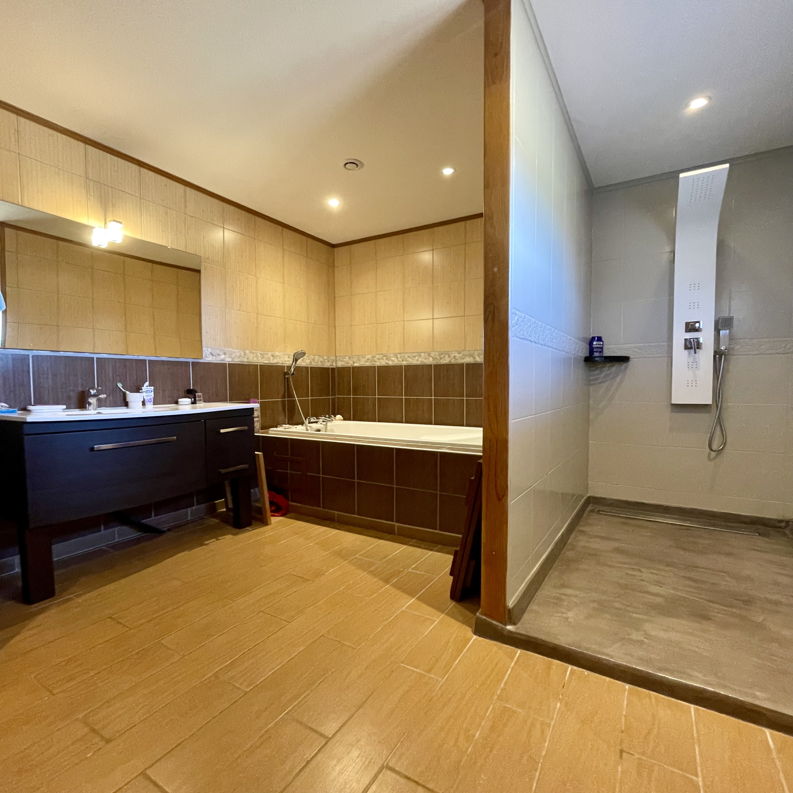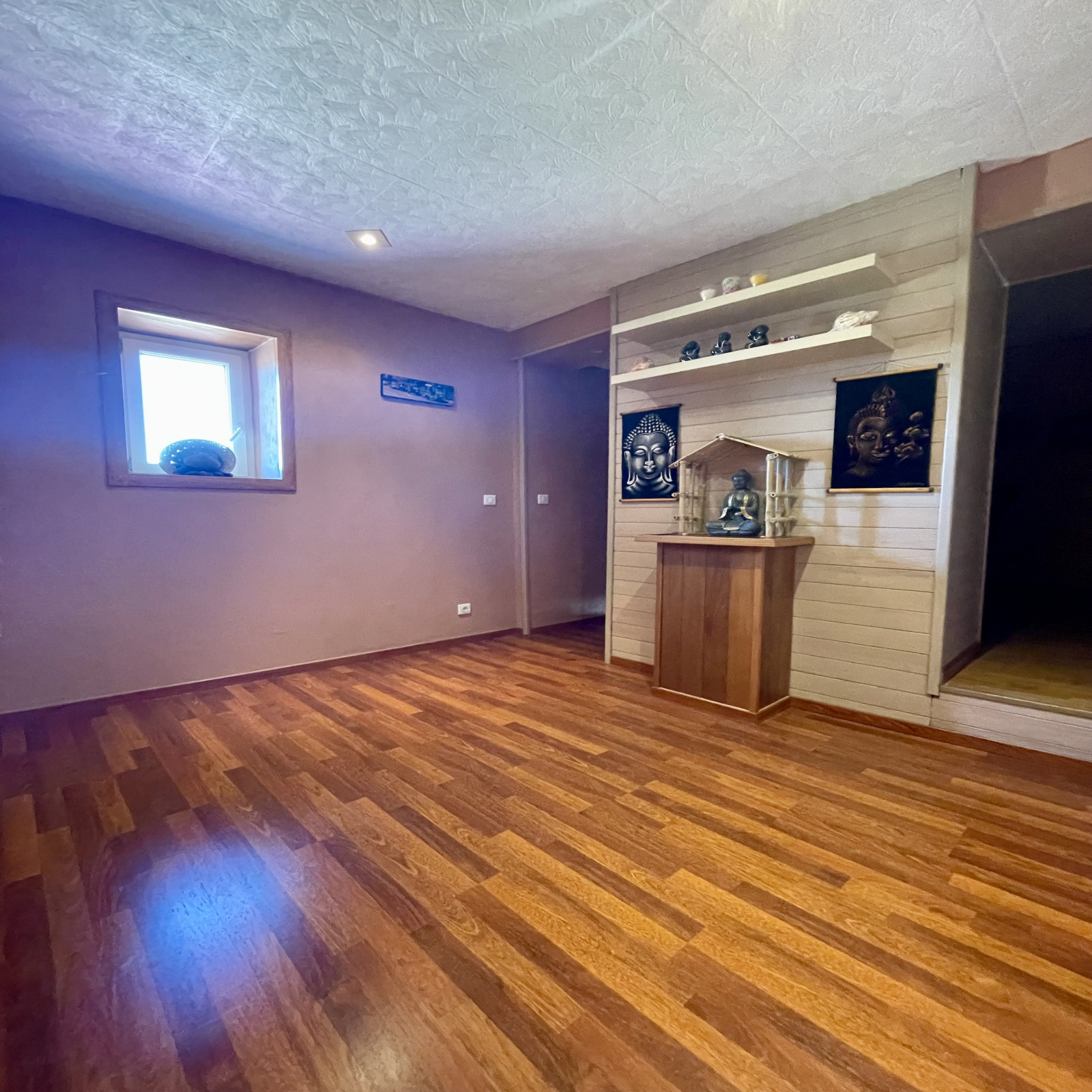 L'étage offre un pallier, un bureau, une salle de bain avec douche, baignoire et WC, 3 chambres, une salle de yoga et un dressing.