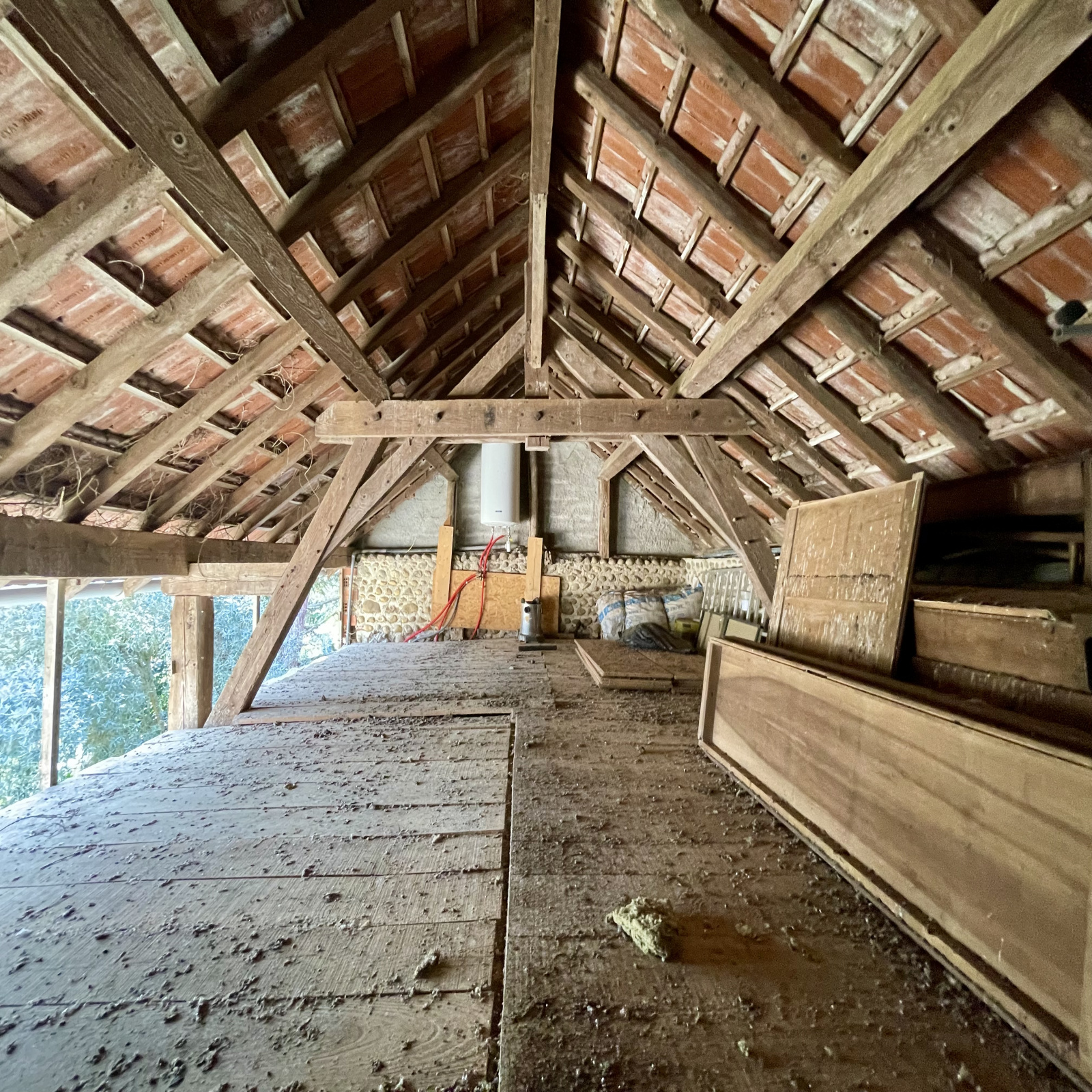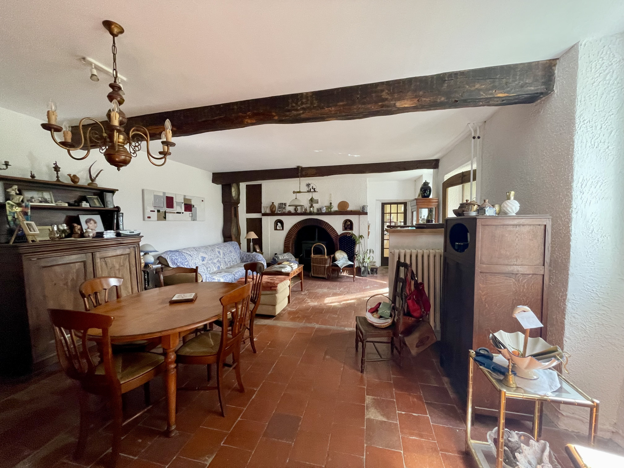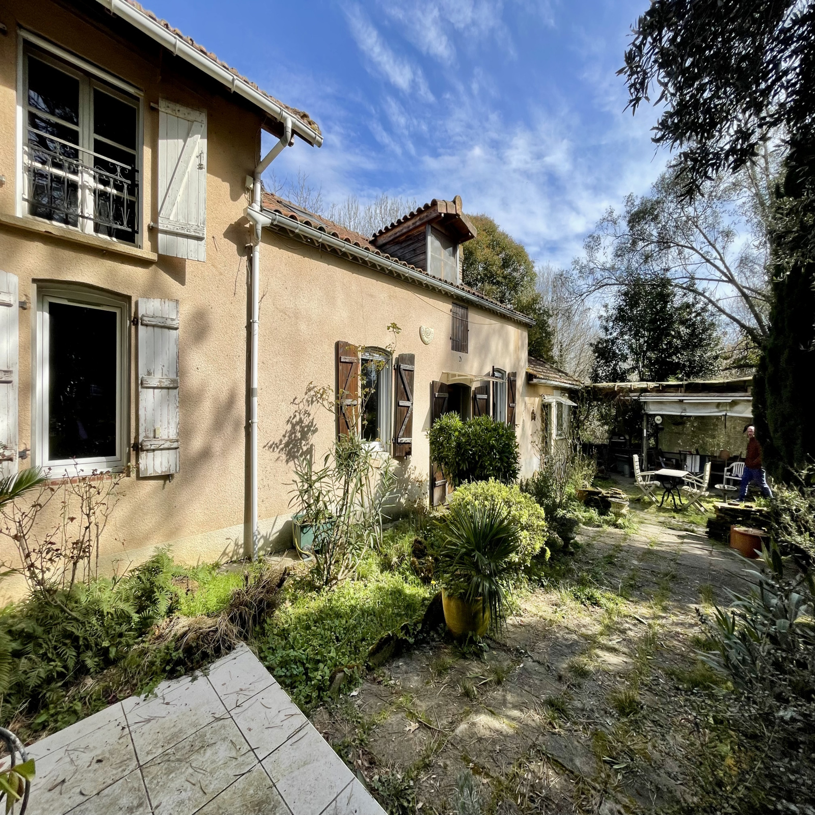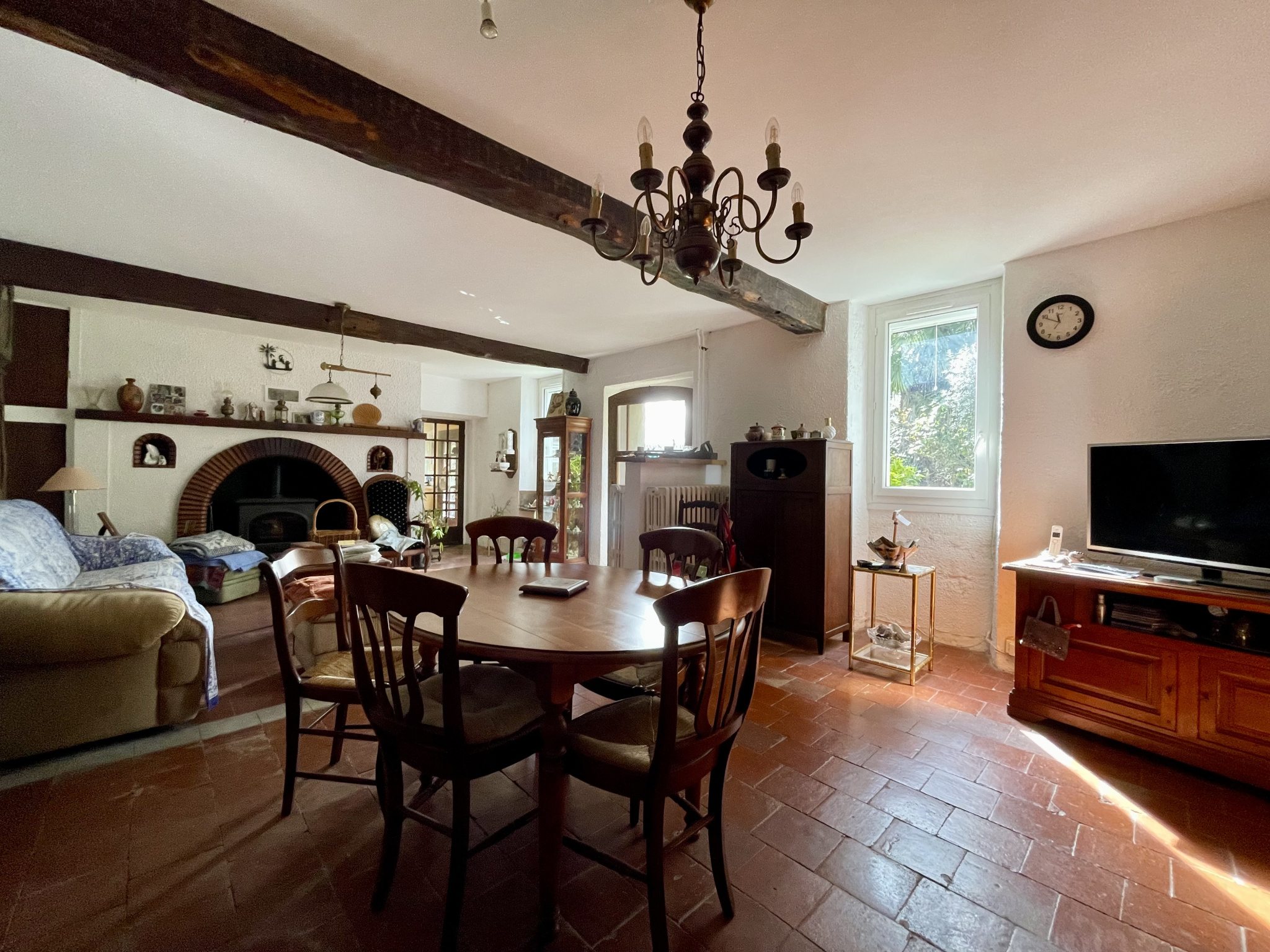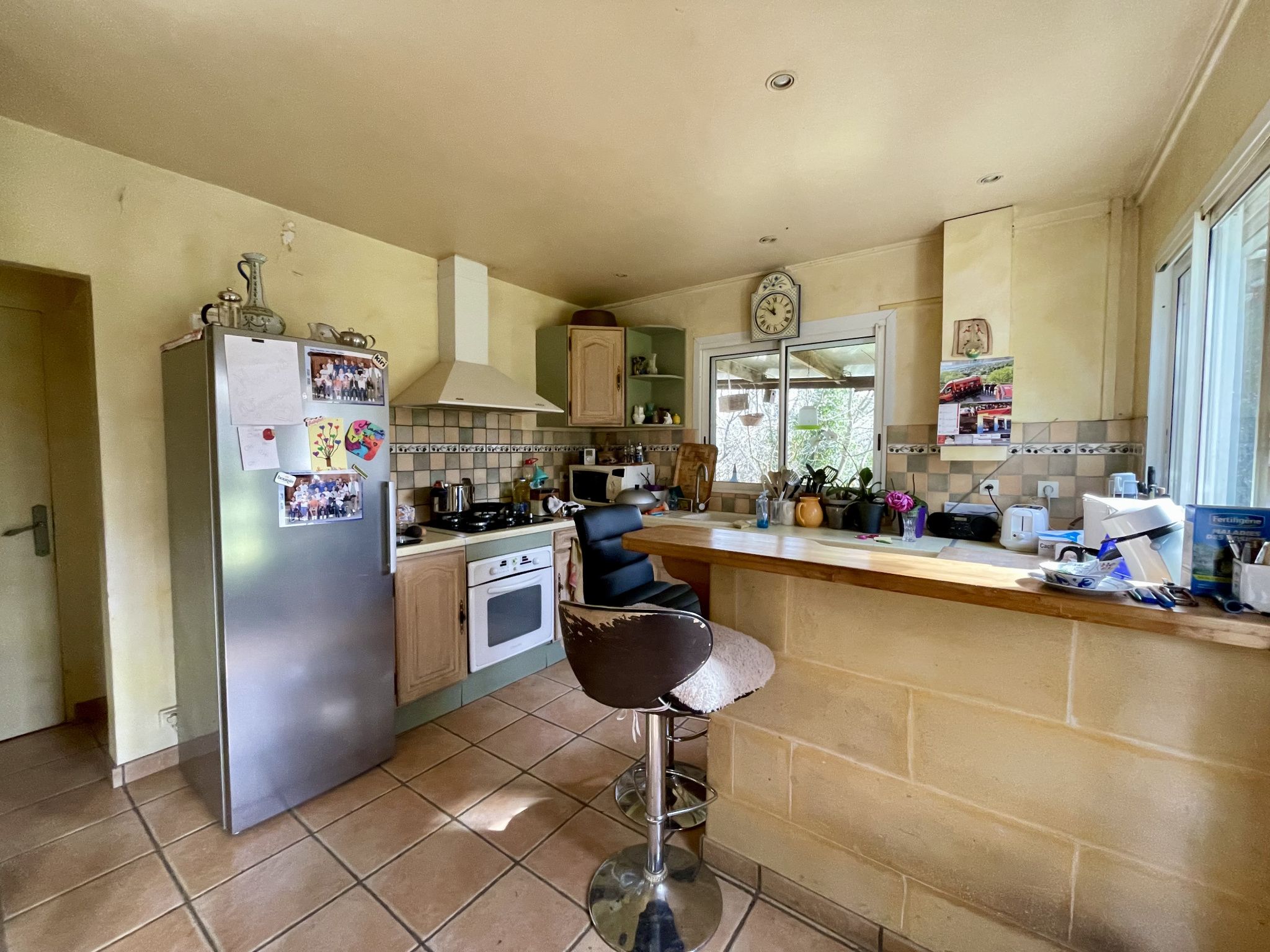 Maison de 97,97 m2 sur terrain de 12358 m2 dans secteur très calme à Vic-en-Bigorre. Chauffage fioul, insert, radiateurs fonte, double vitrage sauf sur 2 portes. Toiture revue il y a 2 ans. Le rez-de-chaussée offre une cuisine, un salon-salle à manger de 36 m2 avec cheminée avec insert, un WC, une salle d'eau avec lavabo et douche, un bureau de 13,42 m2, une grande chambre de 27,64 m2 avec une baie vitrée et un coin toilette (lavabo, douche et WC sanibroyeur) et un cellier de 27,25 m2. L'étage se compose de 2 chambres dont une avec baignoire, lavabo et WC sanibroyeur. Garage-atelier de 67,27 m2. Jardin arboré et terrain avec prairies et bois.