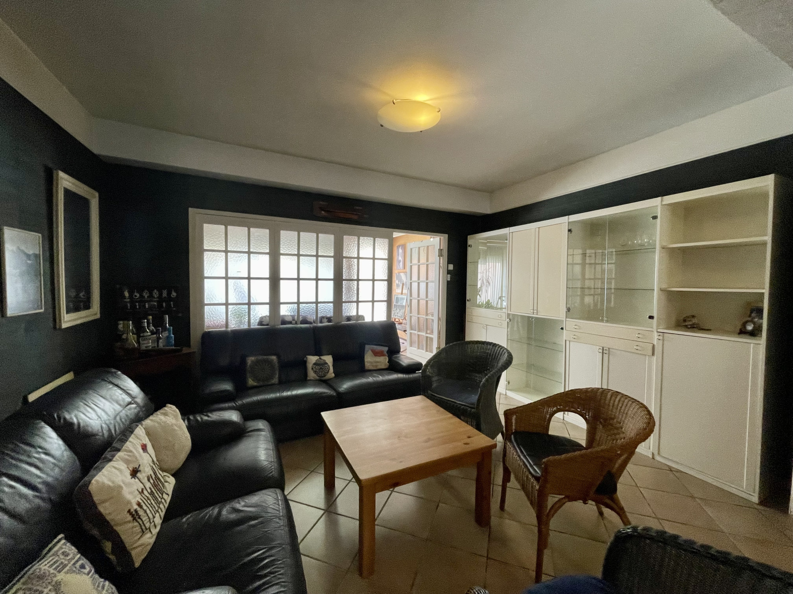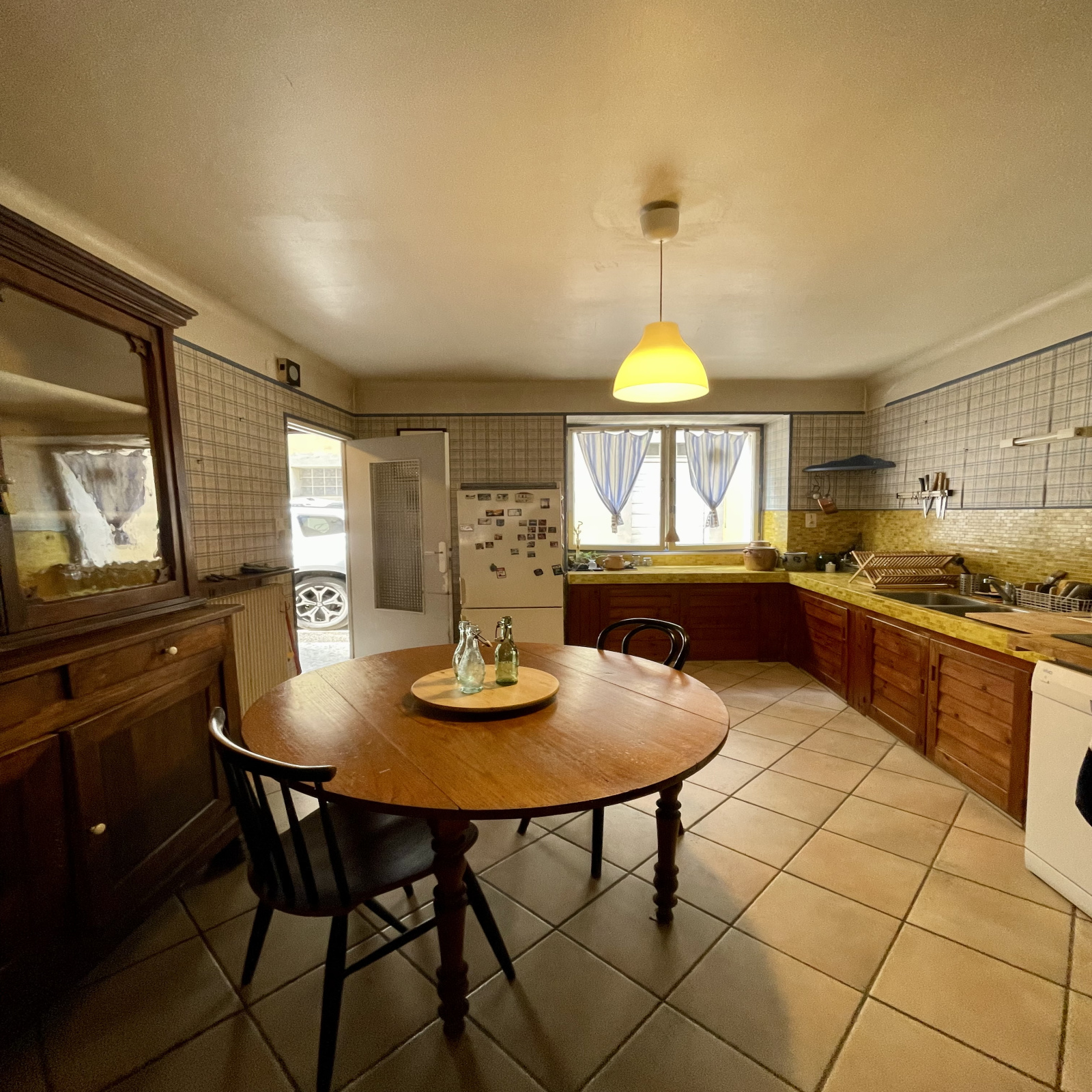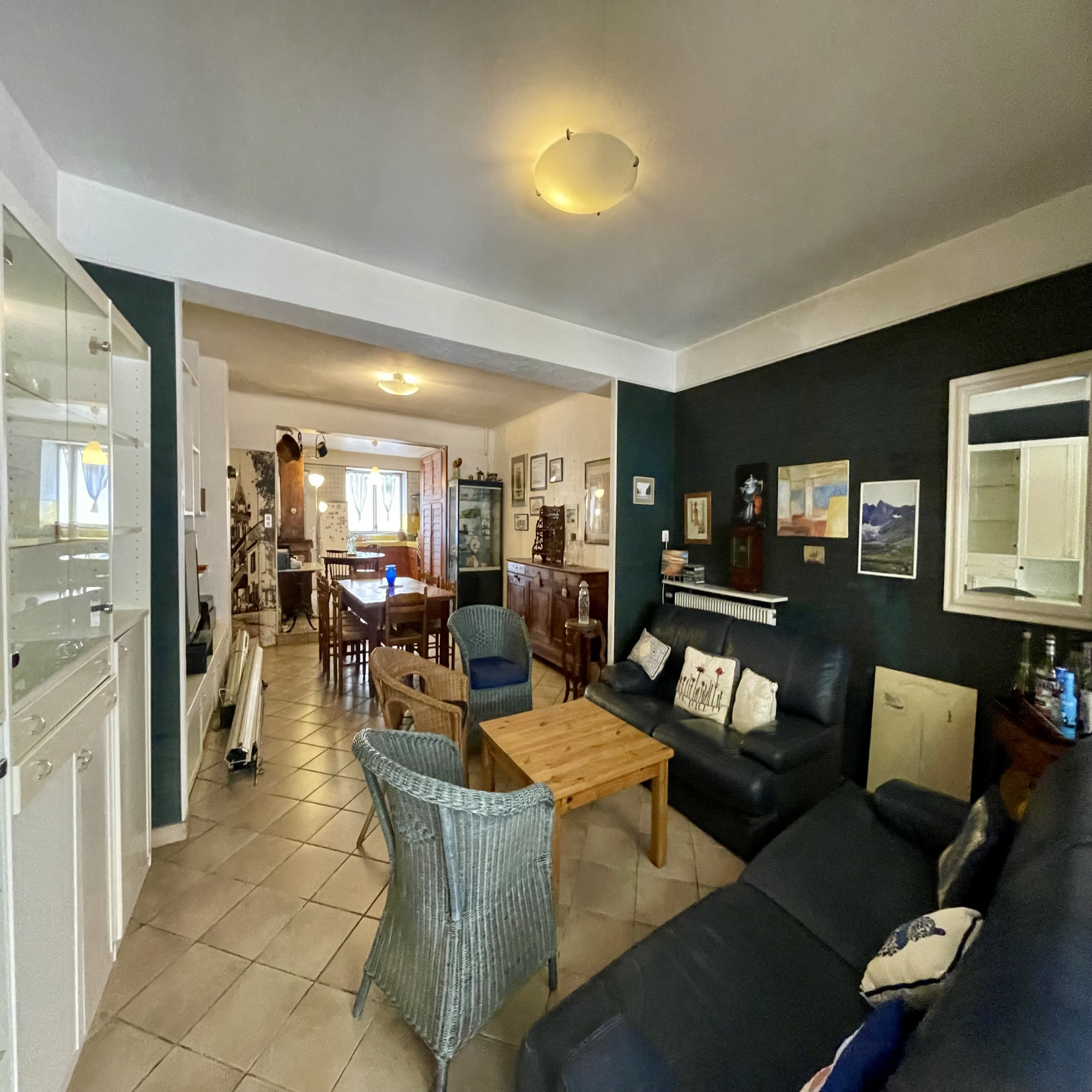 Le rez-de-chaussée est composé d'une cuisine de 17,80 m2, d'un salon-séjour de 32,33 m2, d'une pièce avec vitrine de 13 m2 et l'étage offre un WC, une salle d'eau de 5,24 m2 et 3 chambres.