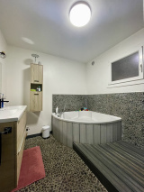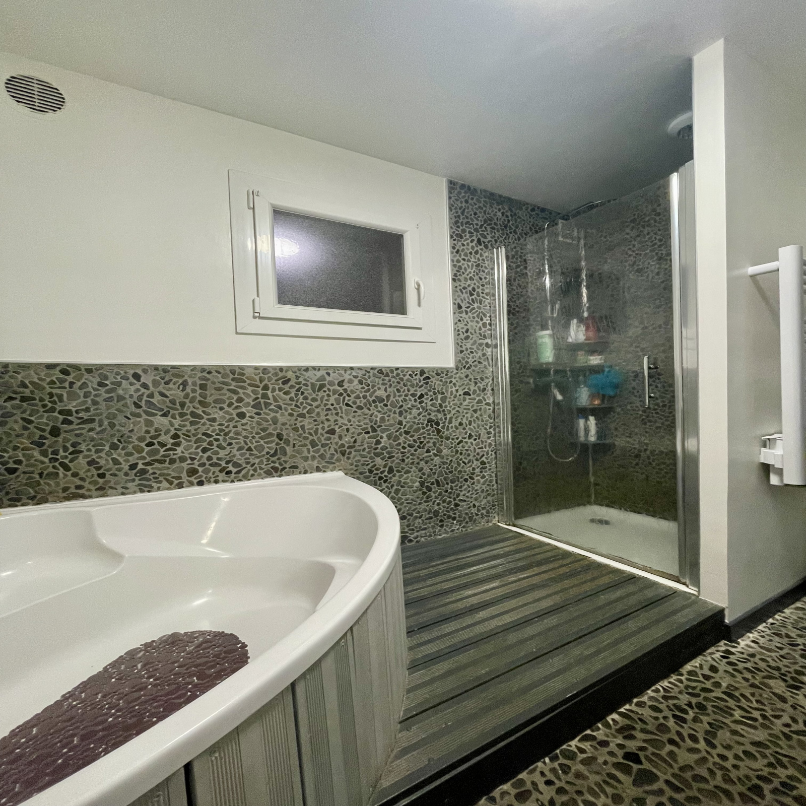 Belles prestations, plancher chauffant par pompe à chaleur AIR/EAU, insert, menuiseries PVC avec stores électriques.