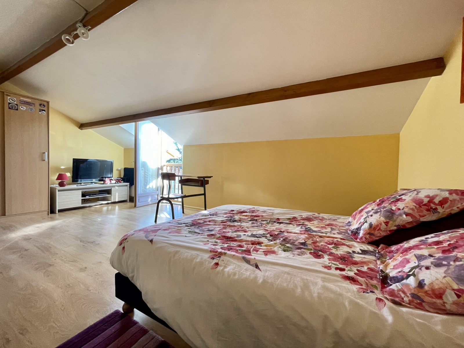 A l'étage, un pallier dessert, deux chambres dont une avec balcon terrasse, une salle de bains, un wc, un dressing et un bureau.
