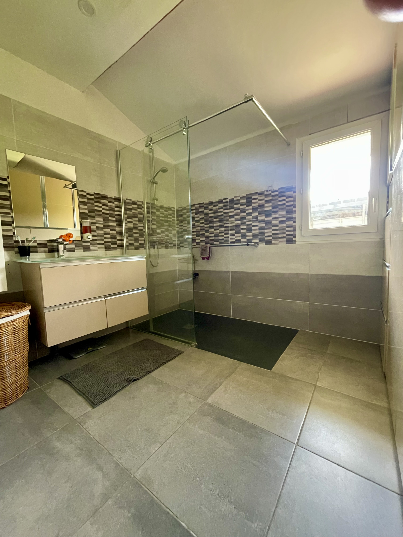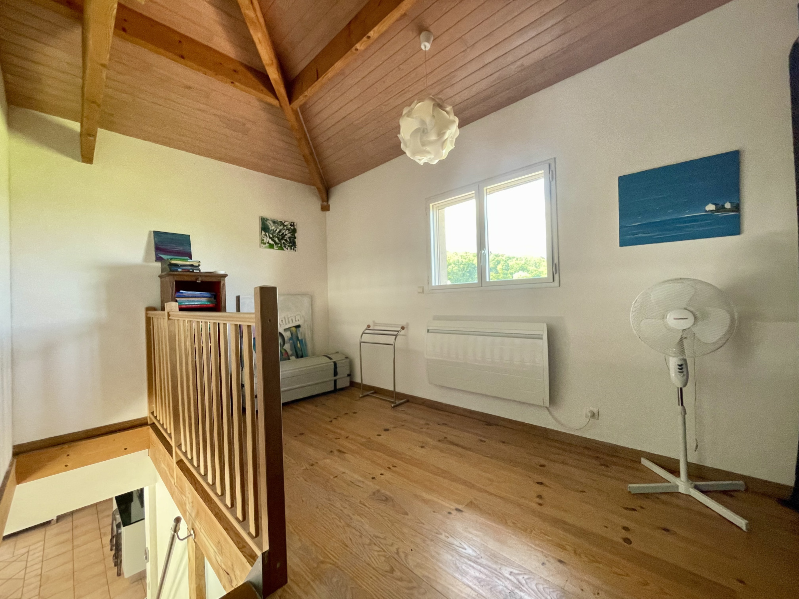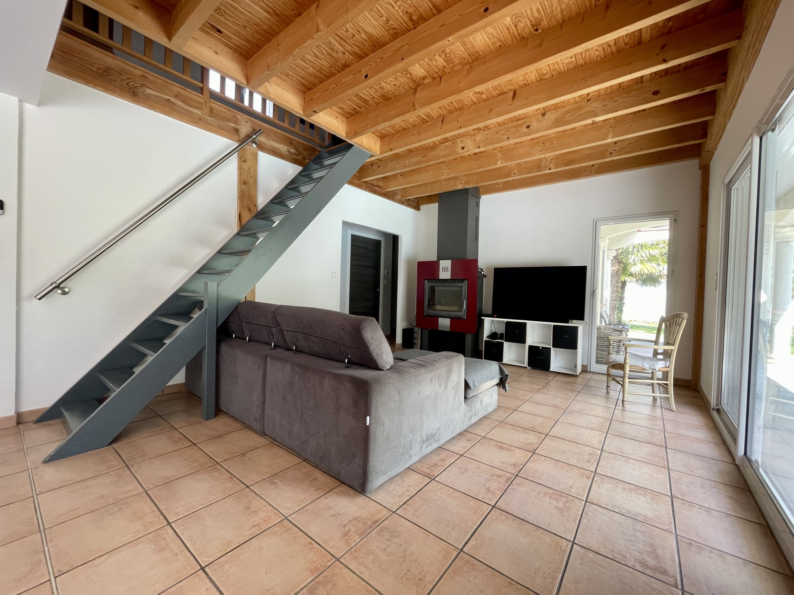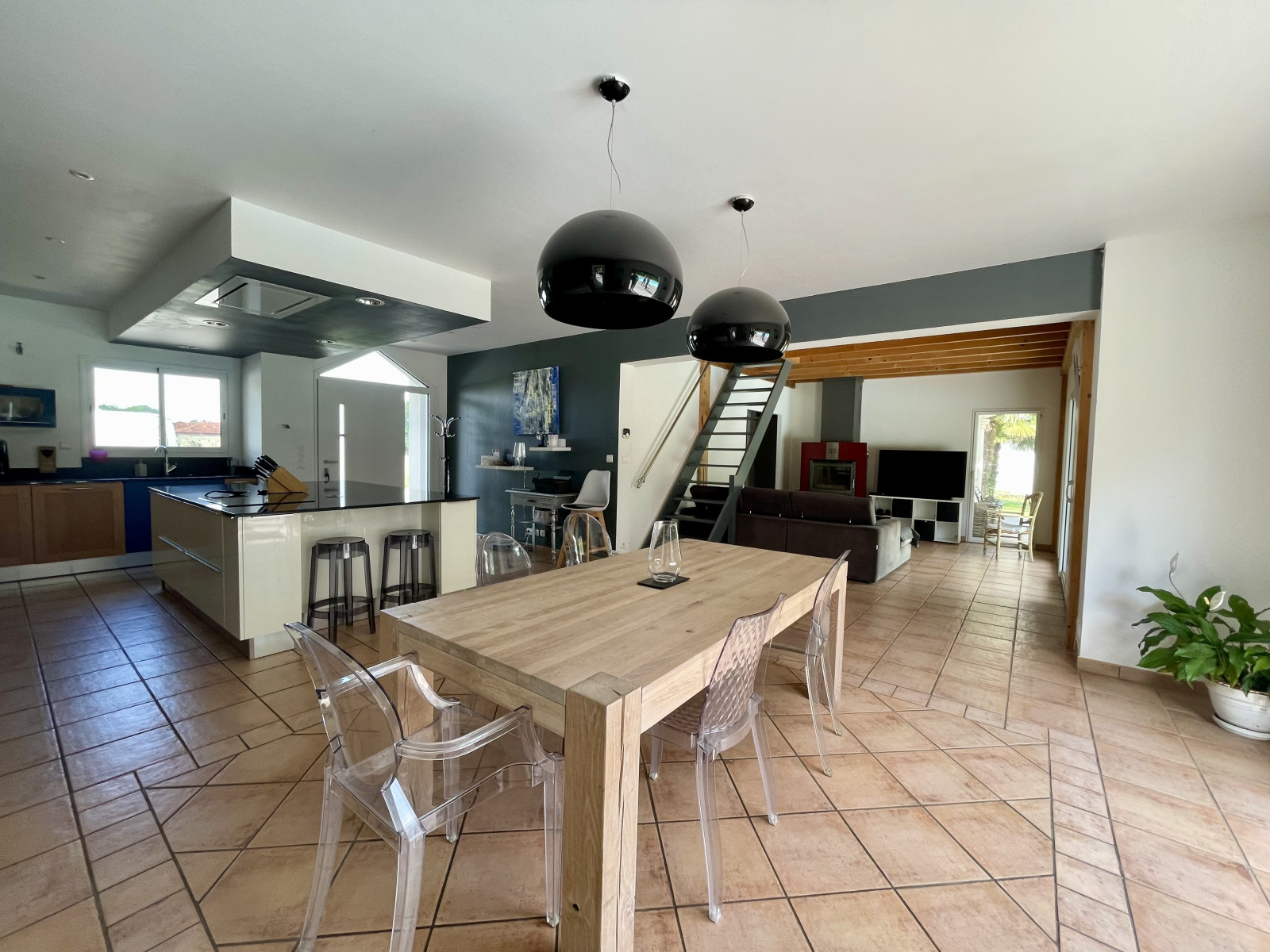 Maison de plain-pied construite en 2002, d'environ 150 m² habitables. Elle se compose d'une grande piéce à vivre avec cuisine équipée et aménagée, 4 chambres dont une à l'étage avec mezzanine, deux salle d'eau aux normes PMR et un WC indépendant.