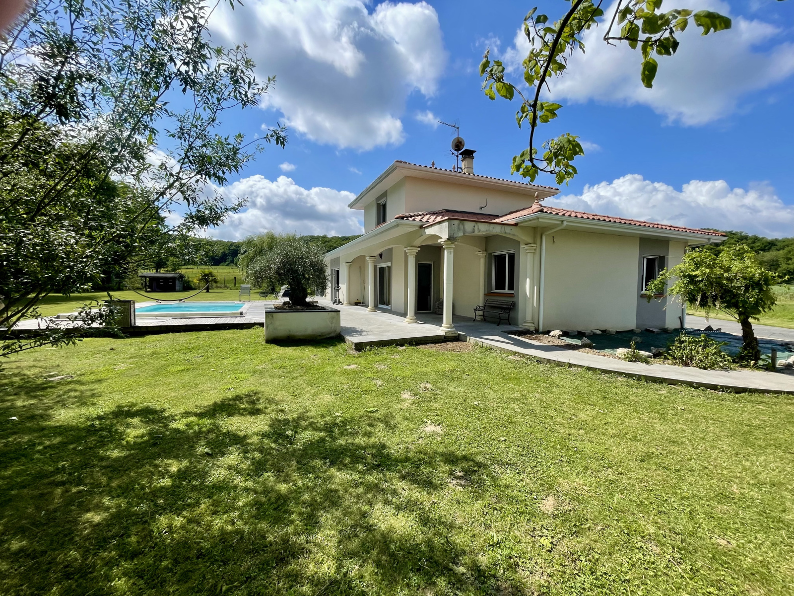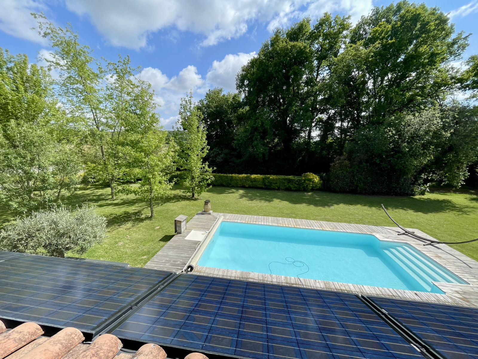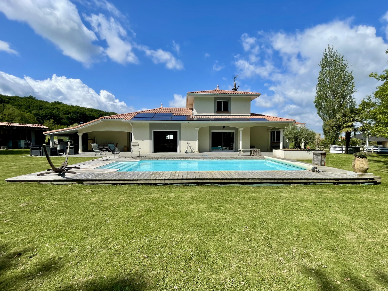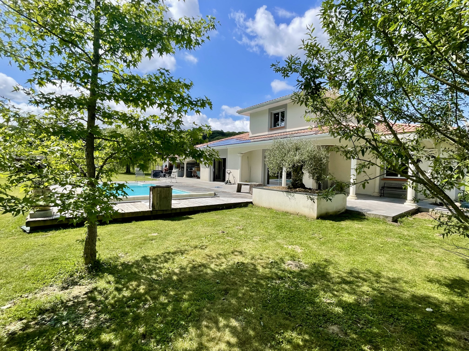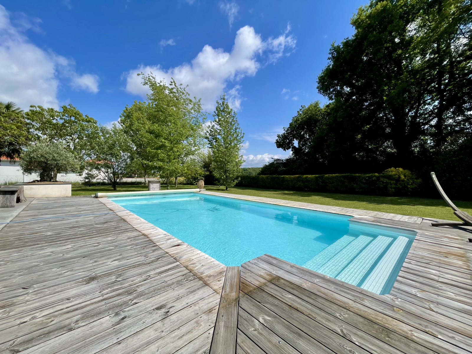 Un terrain arboré de 2154 m² avec piscine équipée d'un robot. Terrasse bois et quartz et cuisine d'été. Cour enrobée à chaud. Belles pretastations.