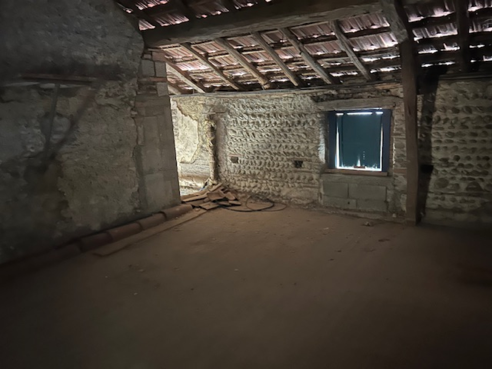 La maison principale à finir de rénover comprends une piéces à vivre de 60 m2 et une piéce de 36 m2 en RDC. A l'étage, 4 chambres et un pallier pouvant servir de bureau.