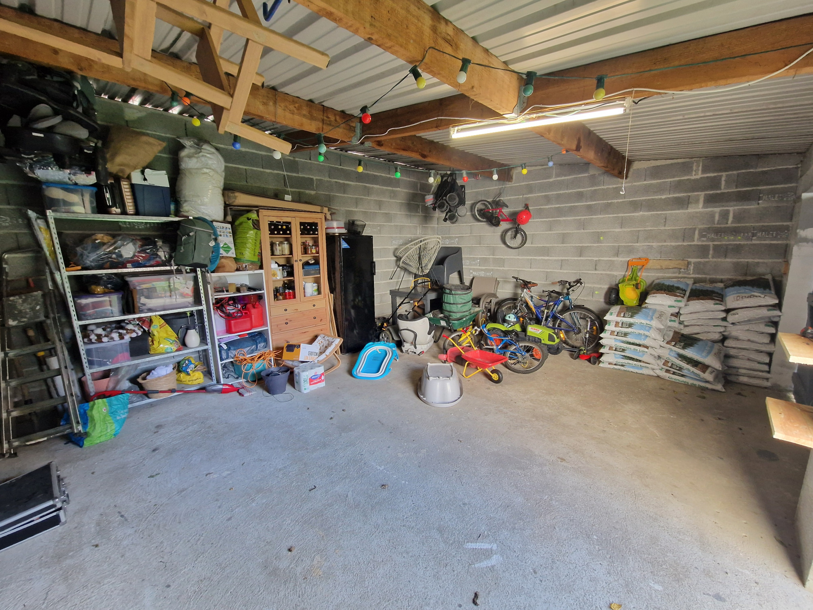 Double garage de 32 m2, terrasse avec cuisine extérieure et terrain clos.