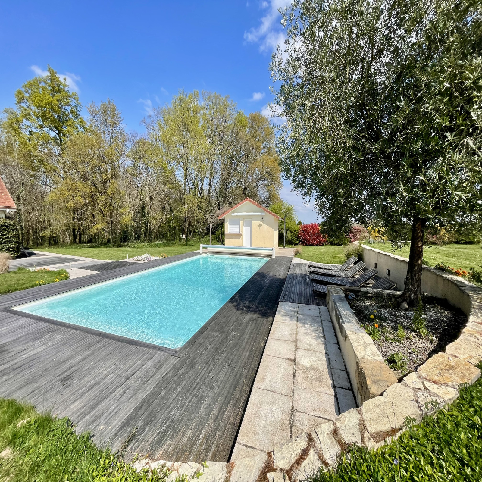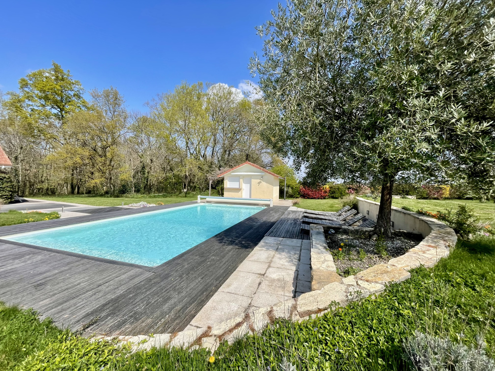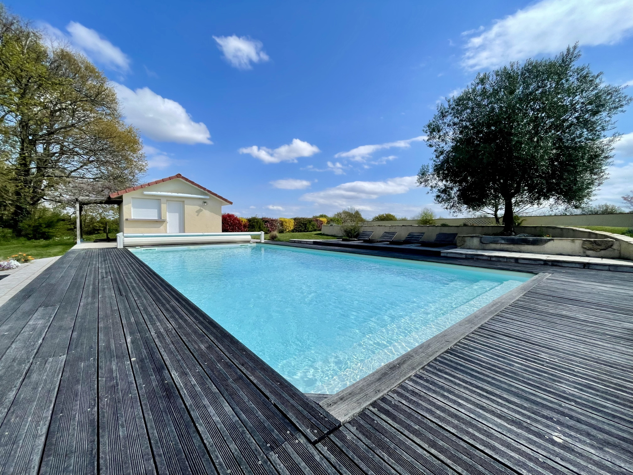 Piscine traitement au sel de 10m x 5m avec pool house de 6,12 m2.
