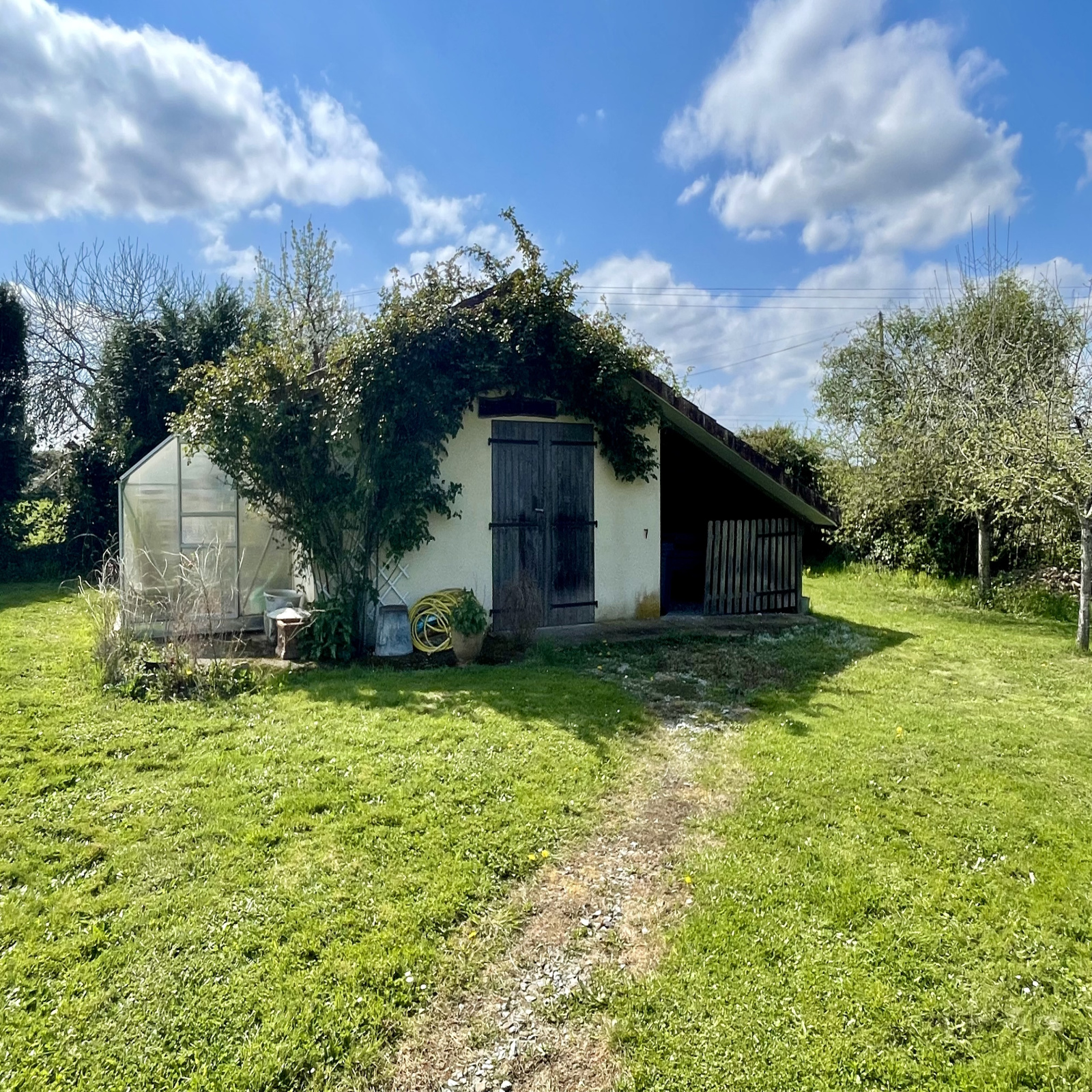Garage avec 2 portails électriques de 42,47 m2, car port, abri de jardin en dur de 14,70 m2, terrasse de 15 m x 4m environ au Sud et autre terrasse de 8m x 3m environ à l'Est.